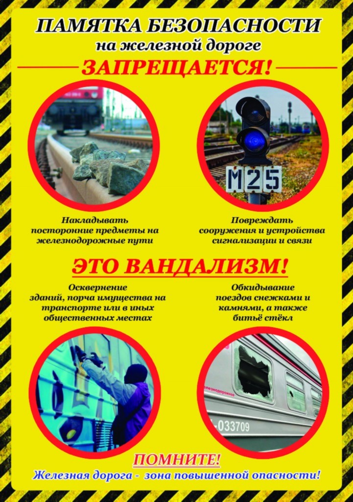 В связи с имеющими место случаями смертельных травм на объектах железнодорожного транспорта, а также фактами вандализма и хулиганских действий подростков в отношении объектов железнодорожного транспорта Запомните: