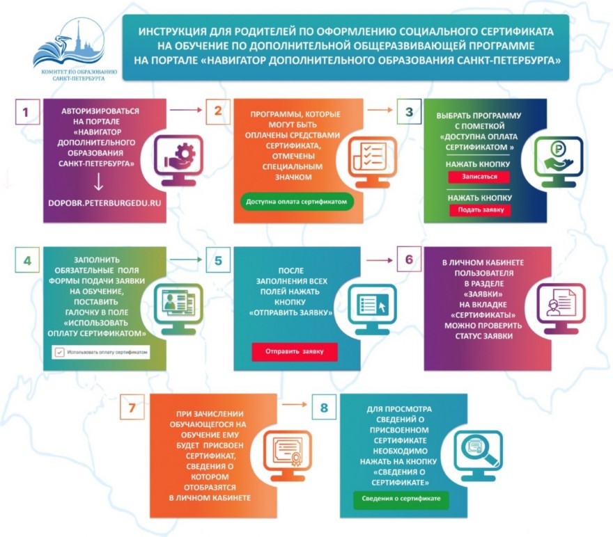Сертификат – это персональная гарантия государства перед ребенком в том, что он может посещать любые лицензированные кружки или секции дополнительного образования, размещенные на сайте Навигатора ДО, за счет бюджета. Это не документ, который нужно носить с собой, а электронная запись в информационной системе. Сертификат присваивается каждому ребенку от 5 до 18 лет. У сертификата есть номинал – бюджетные деньги, которые можно потратить только на оплату кружка или секции. Размер номинала определяют муниципальные власти.