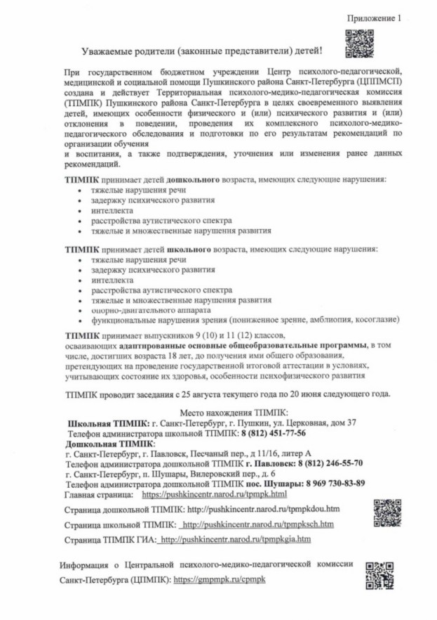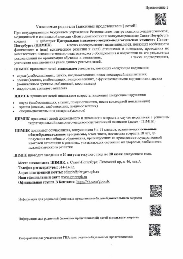 Информация о Центральной психолого-медико-педагогической комиссии Санкт-Петербурга (ЦПМПК): https://gmpmpk.ru/cpmpk