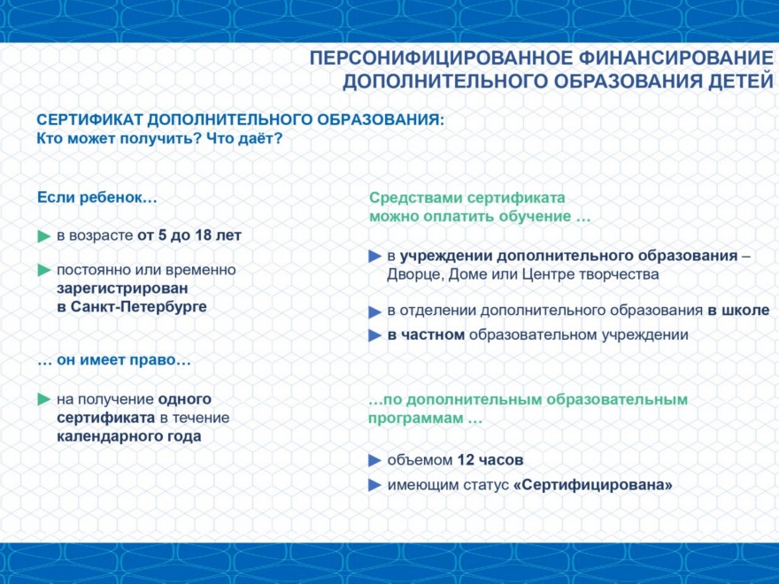 Теперь бюджет дает деньги за фактически привлеченных детей. Благодаря введению сертификатов родители становятся участниками распределения бюджетных денег. Программы, на которые будет направлено больше сертификатов, получат дополнительное финансирование.